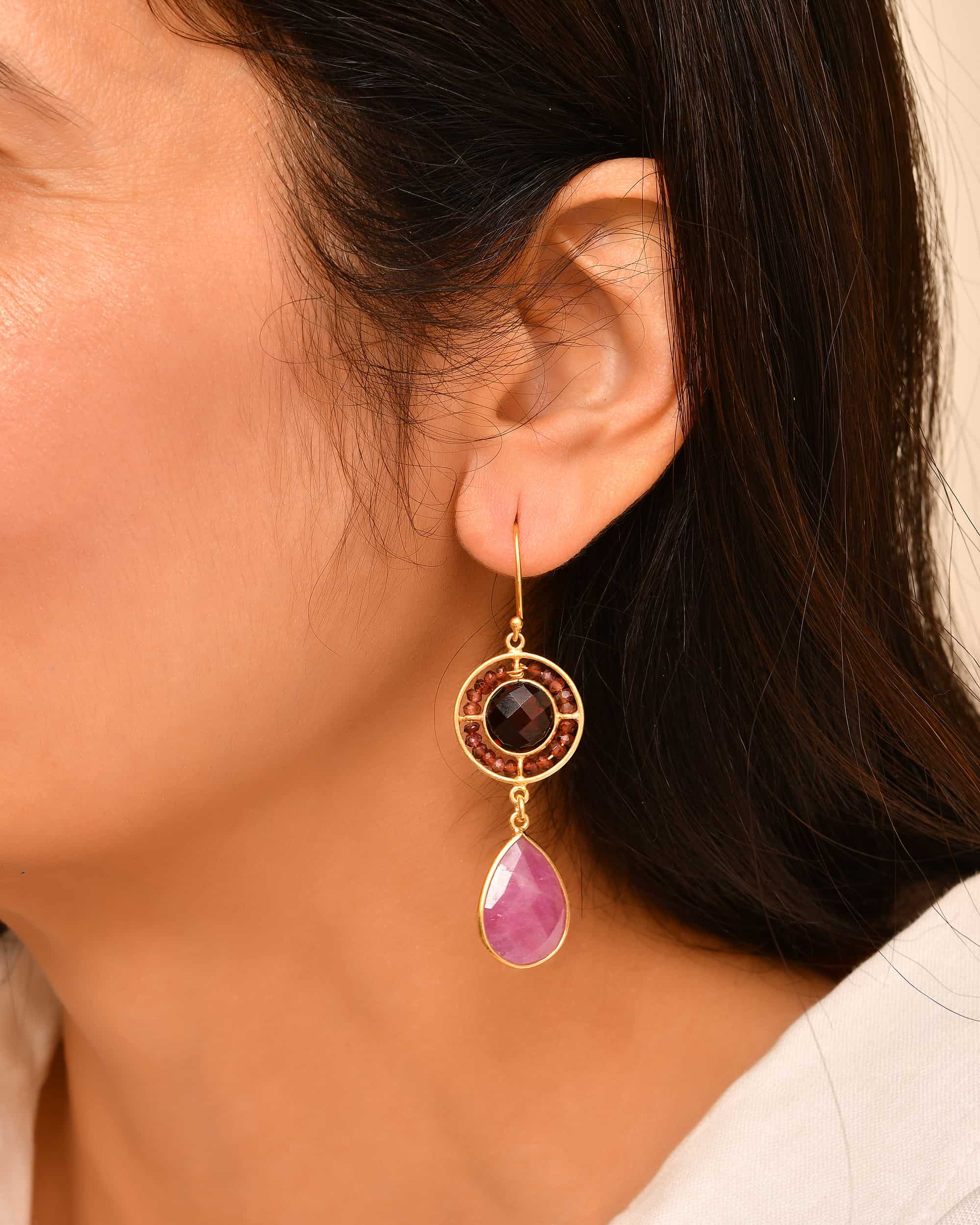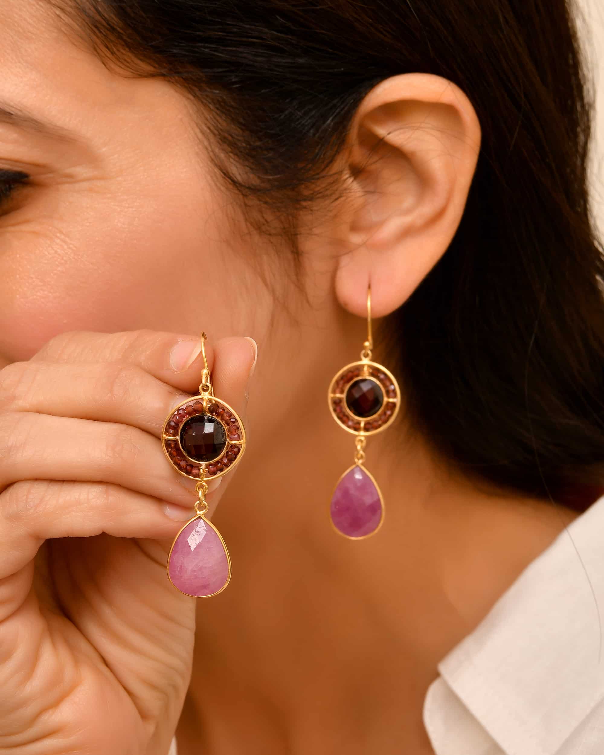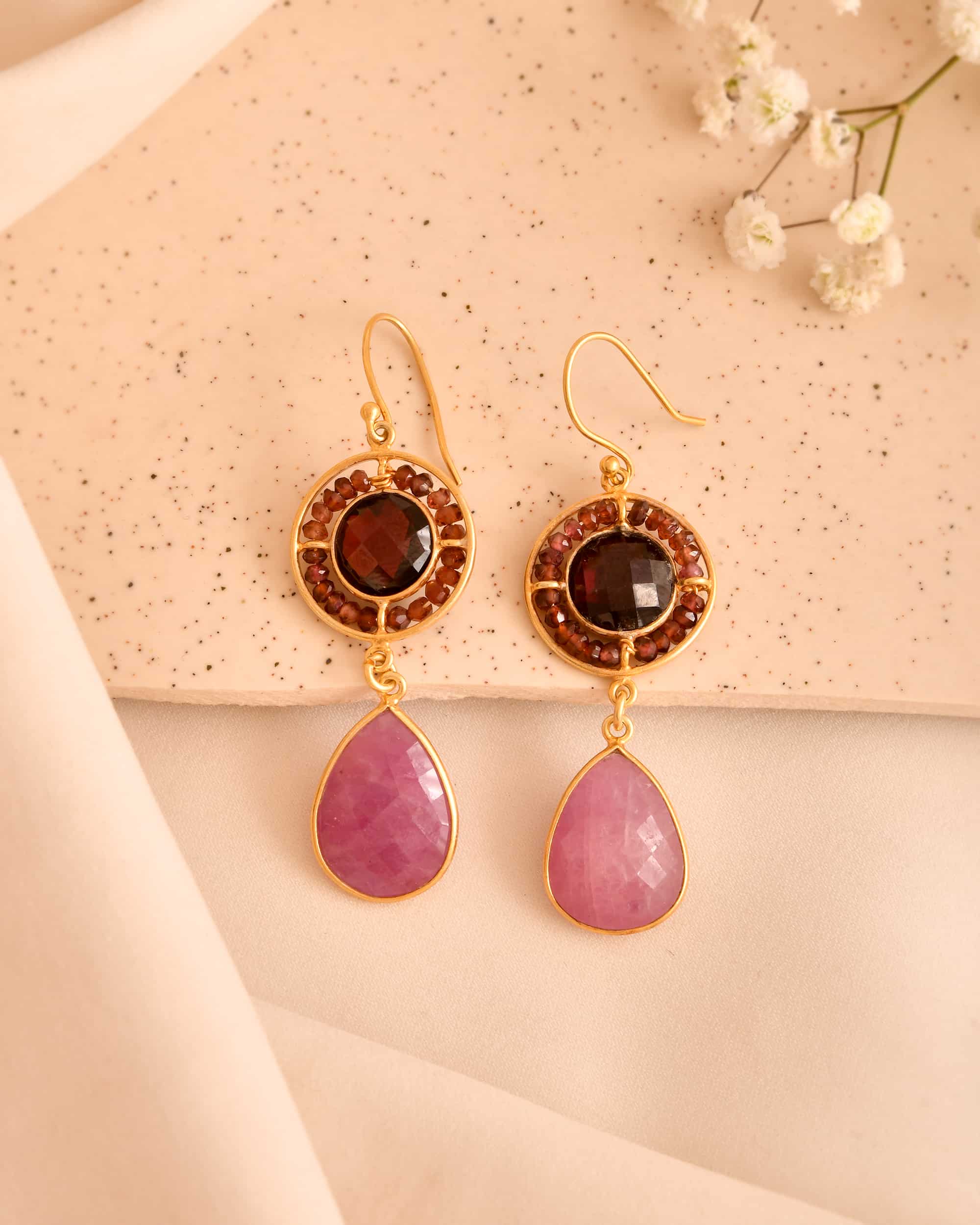 Rich garnet framed with pink sapphire, where city energy meets quiet romance. Think roses, Paris at dusk, and understated allure.